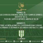 Con motivo de las fiestas de fin de año, el club anunció los horarios para este viernes 30 y el fin de semana. En el caso del Centro de Atención al Socio en la sede y el predio, este viernes sólo atiende de 10 a 14 hs. Mientras que, la pileta permanecerá abierta de 10
