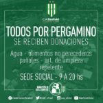 Ante la delicada situación que viven los vecinos de Pergamino por las inundaciones que los azotan hace días, el club se pone a disposición recolectando donaciones para acercar a los damnificados. Así, quienes deseen colaborar, podrán llevar agua, alimentos no perecederos, pañales, artículos de limpieza y repelentes a la sede social, ubicada en Vergara 1635,